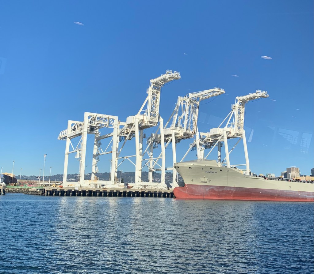 Coming into Oakland from San Francisco on the Bay Ferry, photo by Mary Elyn Bahlert, 1/2026